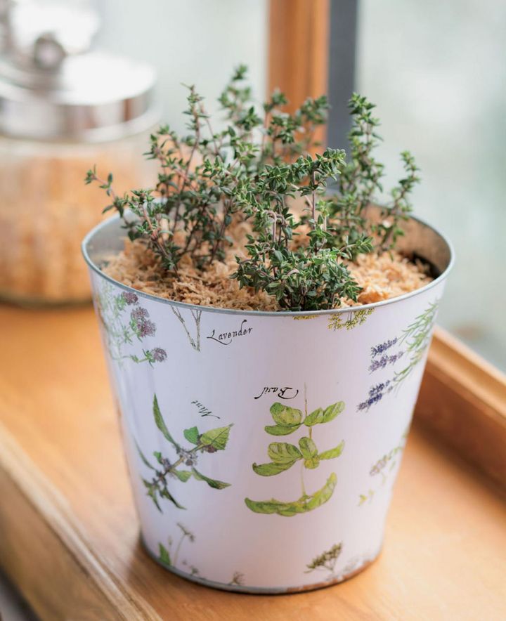 料理に活躍するので、3.5号ポット苗を4株ほど鉢に入れ、土の表面を水ごけでカバーし、キッチンの窓辺に置いてみました。日光が大好きなので、1週間ほど経ったら戸外に出します。