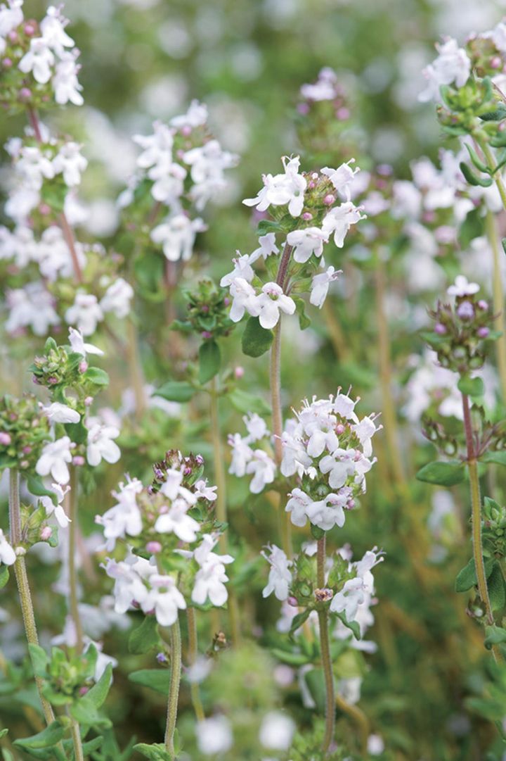 タイムは、地中海沿岸の乾燥地に分布するハーブで、茎や葉にチモールと呼ばれる成分を含み、強い芳香があります。