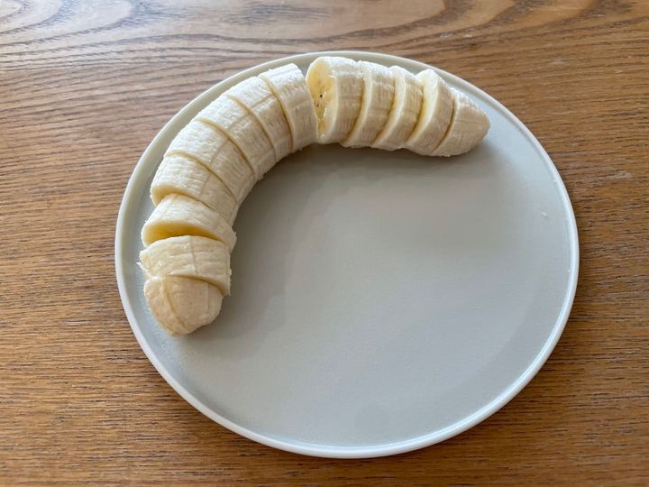 まずは、まな板を使わずお皿の上で切りがちなバナナをカットしてみます。