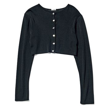 黒カーディガン/エディット フォー ルル 「すそは短く、そでは長い。メリハリがついた丈で無地の黒カーディガンをモードに装える」(岩田さん)