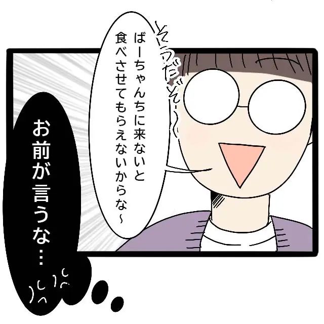 ユミさんがキッチンの隅で1人寂しく持参したおにぎりを食べていると、息子のダイくんが大好物のおいなりさんを持ってきてくれました。すると、ユミさんに意地でもお寿司を食べさせたくないのか、義母が「ダイちゃん優しいわね~でもママはおにぎりがあるから大丈夫よ」と横槍を入れます。夫も「ばーちゃんちに来ないと食べさせてもらえないからな~」と、まるでユミさんが家でお寿司を食べさせていないみたいに言いました。ユミさんは「お前が言うな・・・」と言いたい気持ちをなんとか抑えました。お寿司を食べ終わると、義母は夫と息子だけをお出かけに誘います。これも義実家に来ると毎回のことです。自分の家族だけでお出かけしたい義母は、いつもユミさんを使い走りにします。ダイくんには「帰りにママのケーキも買いましょう!きっと喜ぶわ~」と建前を話しますが、ユミさんだけを仲間外れにしたいのが見え見えです。