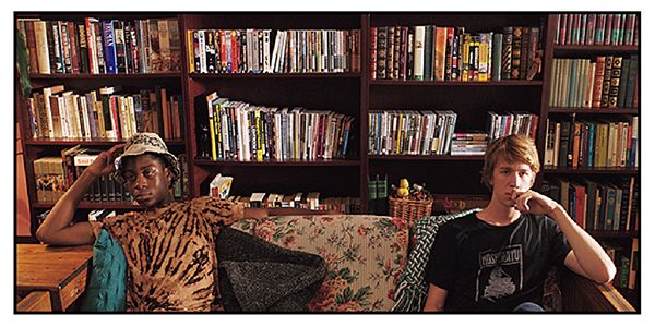主人公グレッグが親友のアールとともに、白血病の幼なじみのために映画制作を行う物語。二人が映画編集を行うシーンでは、彼らの豊かな想像力を映し出すかのように、あらゆるジャンルの本が棚にびっしり。あえて整然とつめないまとまりのなさが、空間に深みを与えている。