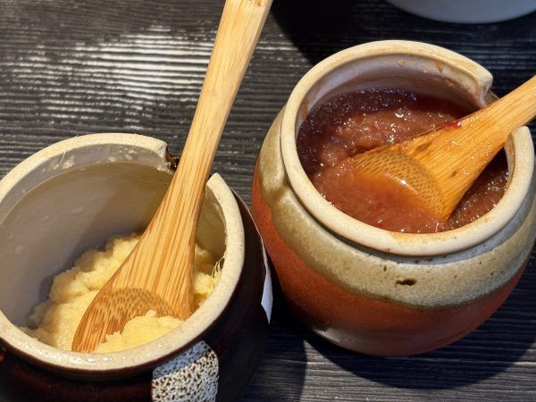 お店はカウンターのみ。席に座ると、目の前に詳しくおすすめの食べ方や組み合わせが書かれているので、そちらを参考にしてみてもいいかも。