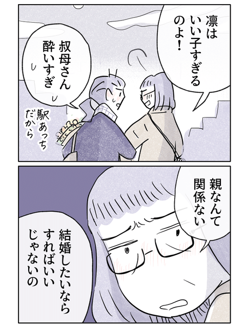 伯母は「結婚するのに親の許可なんて関係ない。したければすればいいじゃない」と、凜の背中を押します。