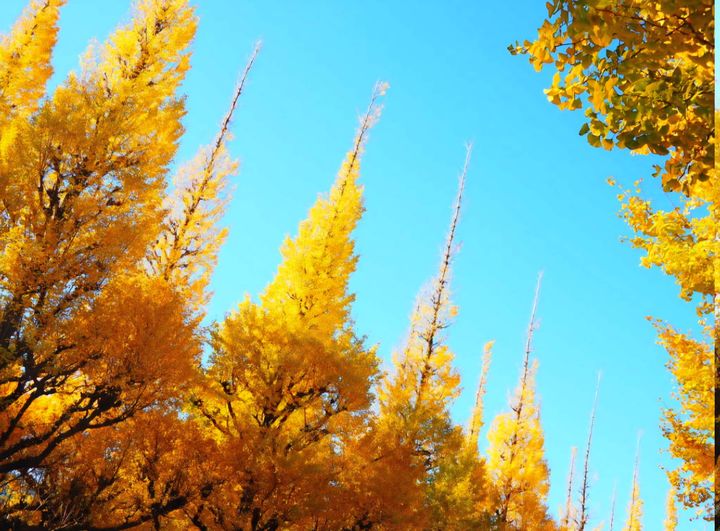 明治神宮外苑の魅力は、青山通り口から外苑中央広場円周道路へと続く約300mのイチョウ並木。146本のイチョウが一斉に色づいて「黄金のトンネル」が出現します。