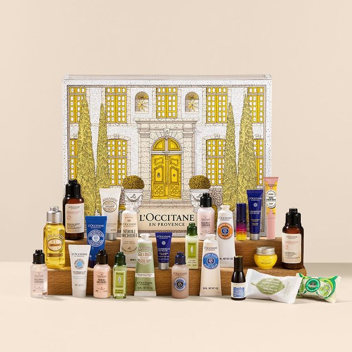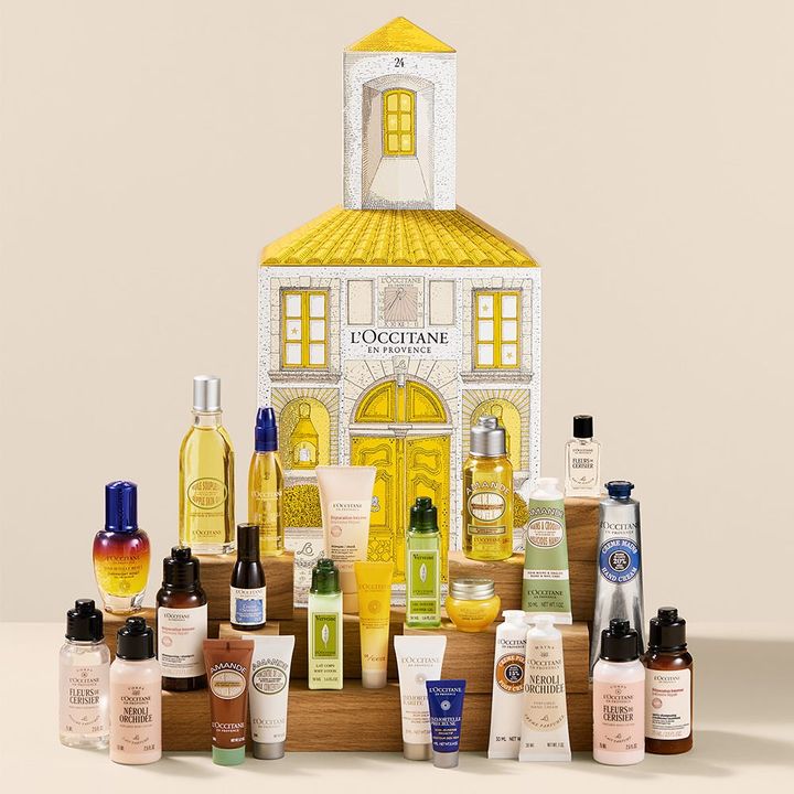 「ロクシタン」のアドベントカレンダーは2種類お目見え! こちらはプロヴァンスの家をイメージした豪華ボックスに、プレミアムケアなスキンケアやヘアケア、さらには限定品など、現品6点を含む計24品が待ち受ける贅沢な内容。人気の夜用美容液「イモーテル オーバーナイトリセットセラム」現品も!