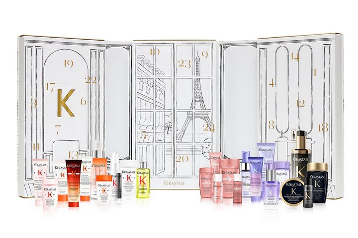 「ケラスターゼ」のアドベントカレンダーは、日本限定。ブランド最高峰オイル「ユイル クロノロジスト N」など、人気アイテムの現品が5点入るほか、さまざまなヘアのお悩みに応えるシャンプーやトリートメント、美容液などのミニサイズがぎっしり。ブランド誕生の地であるパリの風景が描かれたボックスがロマンチック。