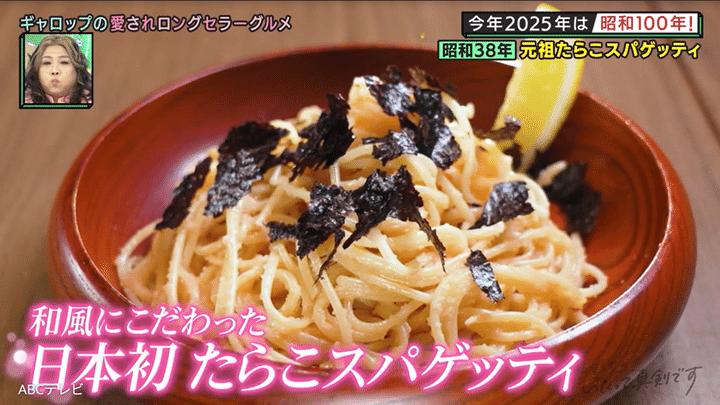 【TVer】元祖たらこスパゲッティの知られざる誕生エピソード……。たらこは○○○○の代わり、隠し味は○○の粉、トッピングの海苔は○○○○をイメージって知っていた?