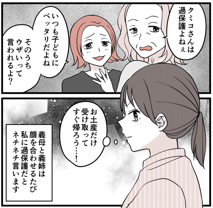 <放任義姉ギャフン!>義母と義姉の「過保護」攻撃にもう限界!私の子育てって変!?【まんが】