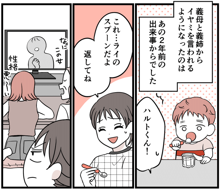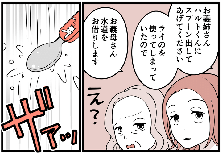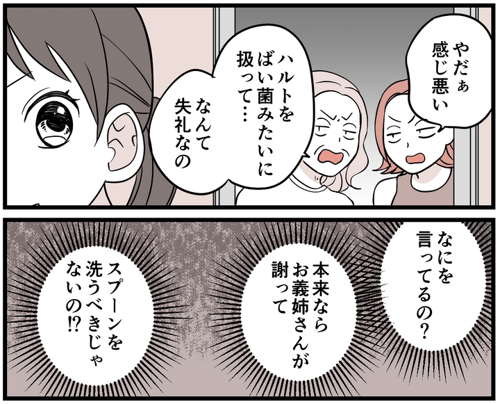 義姉の2歳の子どもが、ライに使っていた離乳食用のスプーンで食べだしてしまいました。そのとき、義姉はテレビを見ながら義母との会話に夢中になっていて、自分の子どもの様子をまったく見ていませんでした。