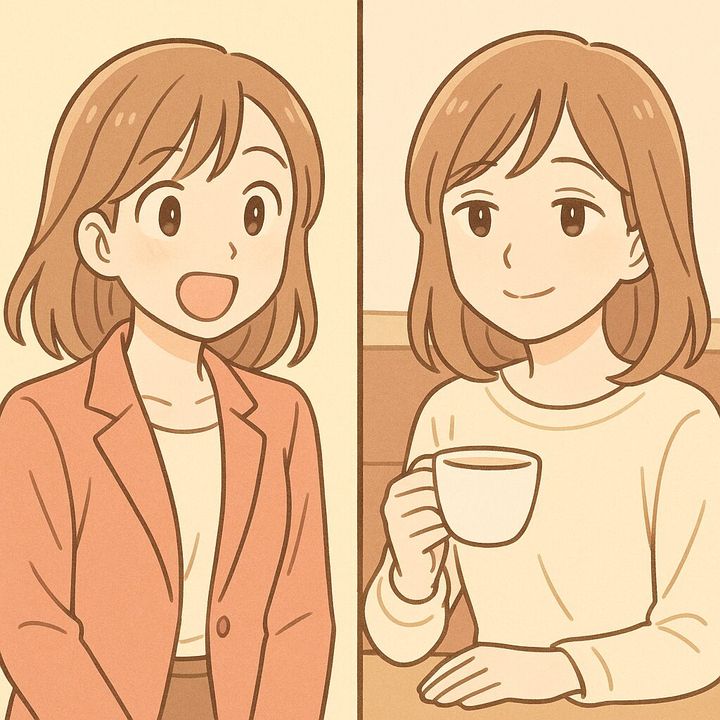 彼女は、以前のような鋭いオーラが消え、とても穏やかな顔でコーヒーを一口飲みました。
