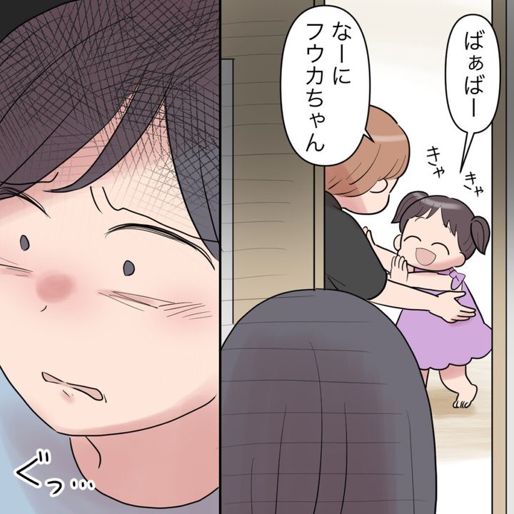 フウカが「ばぁばー」と嬉しそうに義母に懐いて遊んでいる様子を見ると、心がえぐられるような気持でした。「母の」愛情不足は当然です。だって、いつも義母に奪い取られるのですから。