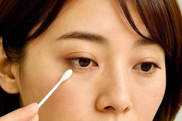 アイラインやマスカラがにじんだら、上から足すより「オフして整える」が正解。綿棒に少し乳液を含ませて、にじんだ部分をやさしく拭き取りましょう。