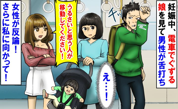 3. 「うるさいと思う人が移動して!」妊娠中、電車でぐずる娘を見て男性が舌打ち。女性が反論!さらに私に向かって!