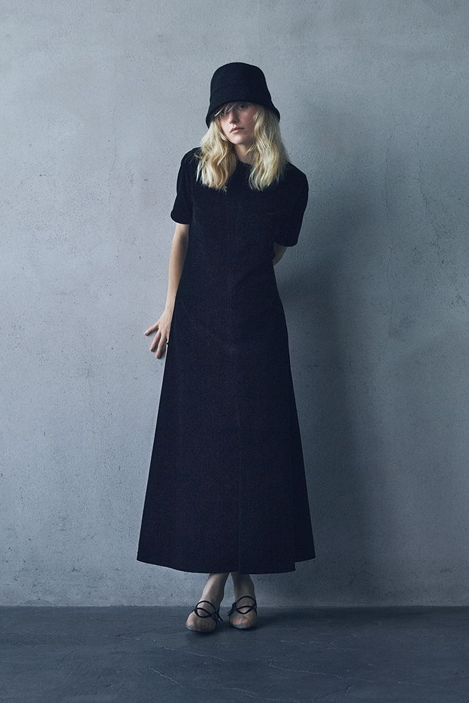黒コーデュロイドレス/ベッド&ブレックファスト(グリードインターナショナル) ハット/SACRA(インターリブ) リング/PLOW シューズ/TOKYO WEEKLY JOURNAL(バロックジャパンリミテッド)