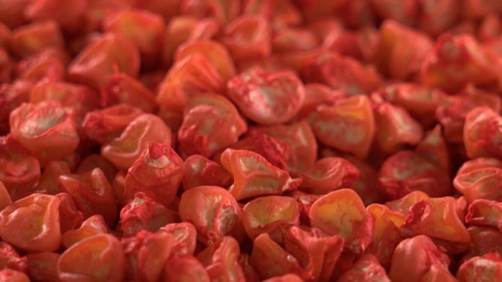 続いて紹介されたのは、真っ赤なトウモロコシ「大和ルージュ」誕生の物語。奈良県天理市にある大和農園は、これまでに500種類以上の野菜の種を開発してきた。大和ルージュ開発者のひとり、金子さんは「誰もが手にとって喜んでくれる、笑顔になれる品種を開発したいと思いました」と教えてくれた。