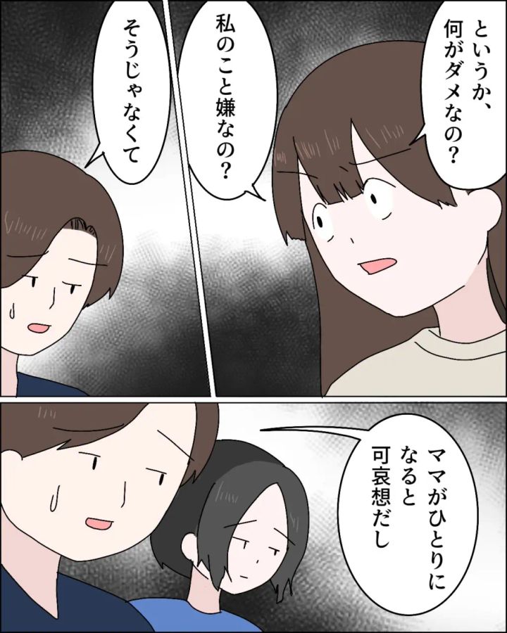 「というか、何がダメなの?私のこと嫌なの?」ジュリがイラッとしながらそう言うと、「そうじゃなくて、ママがひとりになると可哀想だし」と夫。