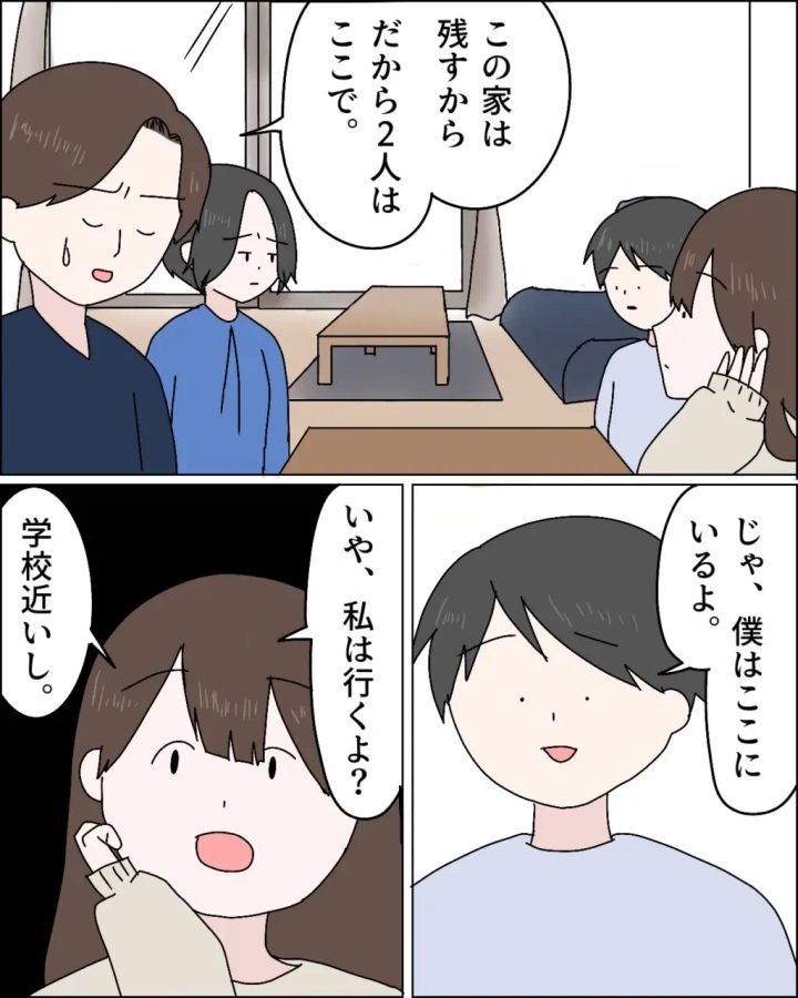 「この家は残すから、だから2人はここで」夫がそう言い、「じゃ、僕はここにいるよ」とカンタが言うと、「いや、私は行くよ?学校近いし」とジュリが平然と言いました。