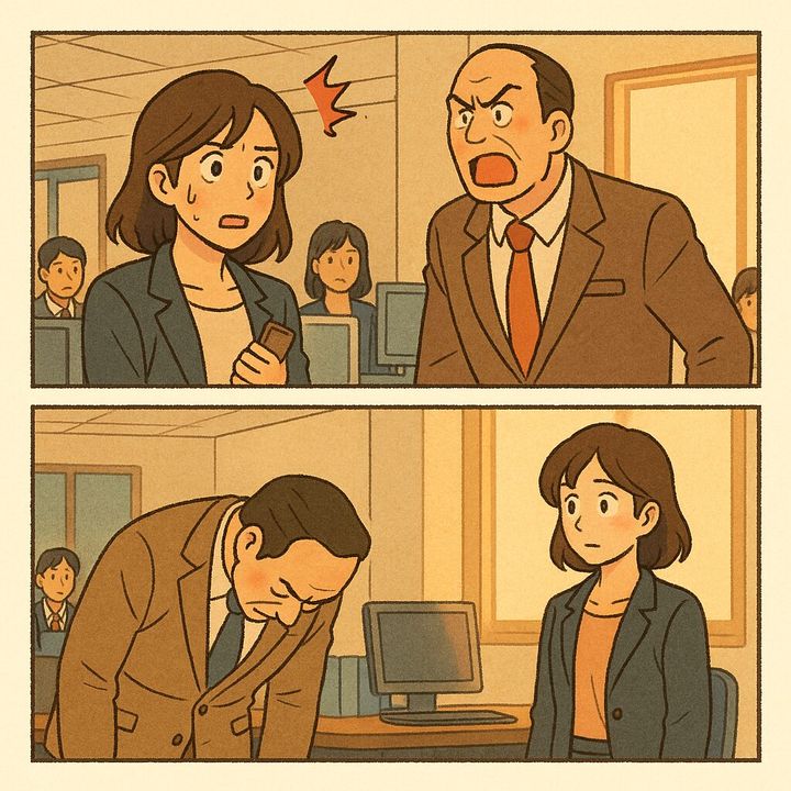 翌朝。重い足取りで出社すると、部長が私のデスクにまっすぐやってきました。また何か言われるのかと身構えていると、彼は深く、深く頭を下げたのです。