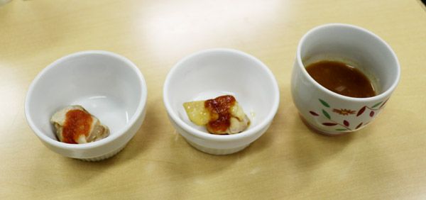 試食では、鶏肉にかけたもの、お湯で溶いたスープをいただきました。