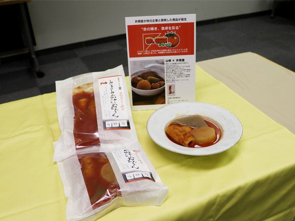 明治15年創業、北九州の老舗練物店「山吹」が開発を手がけたのは、「とまと出汁おでん」。こちらも若松産の出荷できなかったトマトを使用しています。最初は缶詰に入ったプリンを作ろうとして、そこから茶わん蒸しとなったがうまくいかず…トマトを使った出汁のおでんを作ることになったのだとか。