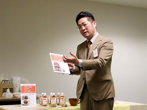 北九州の海の幸や山の幸を生かした調味料を製造している「ごとう醤油」と開発されたのは、3種類の調味料。同社で15年ほど前から使用している、水切りトマトの商品として出荷されないものを使って開発。「トマトは洋風のイメージがあったが、和のイメージで作りたいという井筒屋さんの要望から、どんなものと組み合わせるか、どういったものなら食べてもらえるか、試行錯誤を繰り返しました」と五嶋社長。