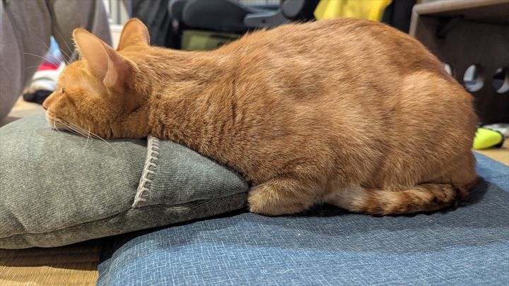 頭を湯たんぽに乗せてとろけています。 実に気持ち良さそうですね~。