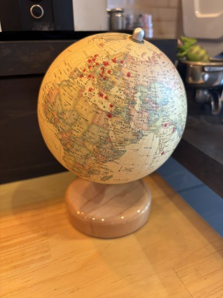 お店には地球儀が置かれており、海外から来たお客さんが自分の出身地に赤いペンで印をつけていくという素敵な演出も。世界各地の印がたくさんあって、様々な国の人たちが来ていることに驚きました!
