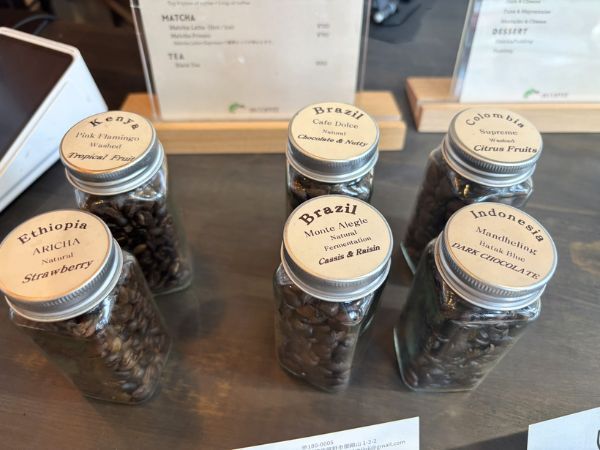 オーナーが豆の名前が入ったボトルを見せながら「酸味があるのはこちら、苦味があるのはこちら」と、やさしく教えてくれます。質問にも丁寧に答えてくれて、コーヒーへの愛情の深さを感じました。