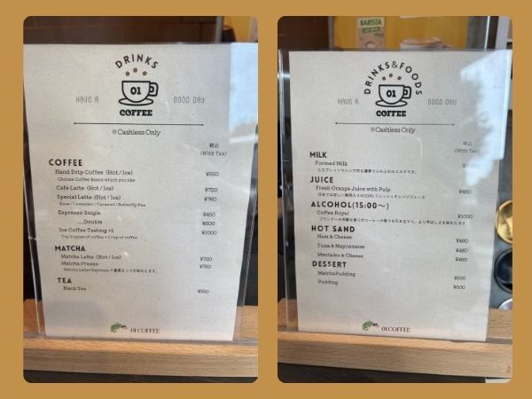 メニューは、コーヒーのほか、抹茶、ミルクなどもあります。