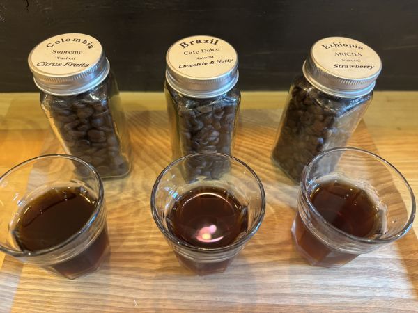 それぞれの名前がわかるように豆も添えられていて、まるでワインのテイスティングのようです!