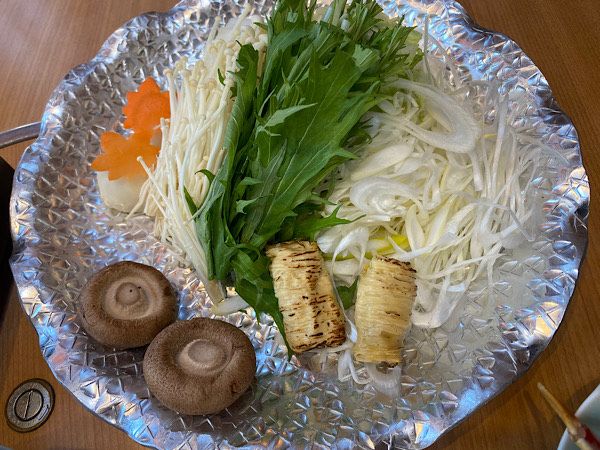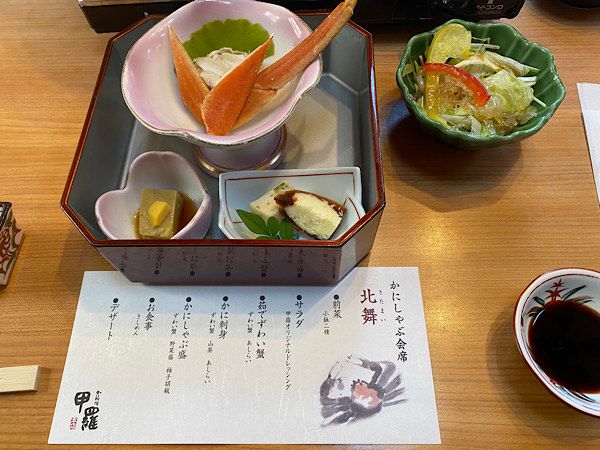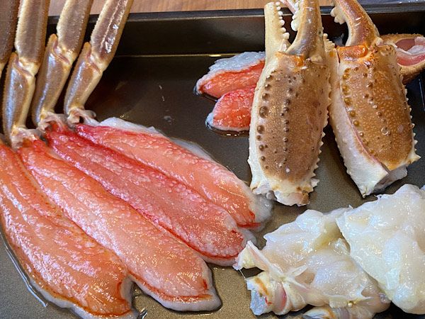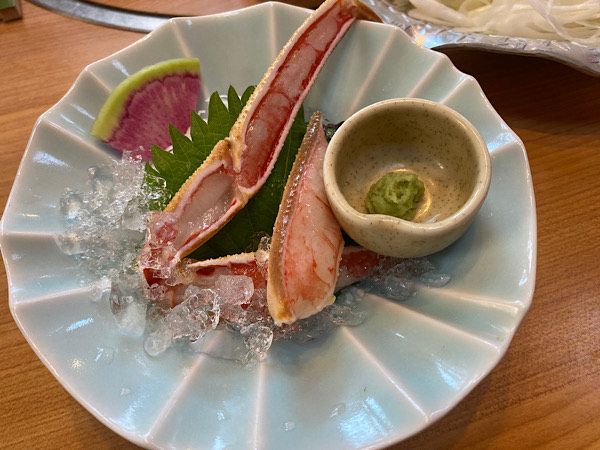 脚から爪、胴まで楽しめる蟹しゃぶ盛!お野菜もたっぷりです。さっそくしゃぶしゃぶしてみます。