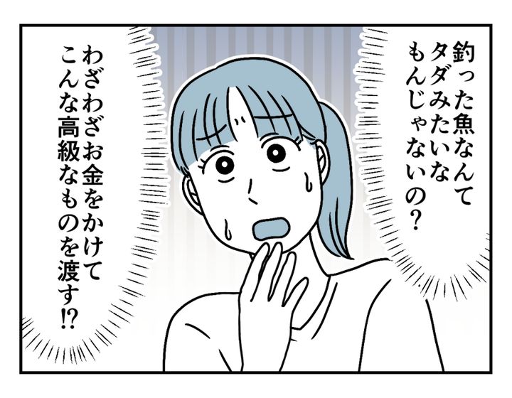 お義母さんの人付き合いへのお金の出し方に、少しずつ違和感を抱きはじめたカリンさん。どうしてここまでしなくてはいけないのかとちょっと驚いているようですね。一方お義母さんは、何かをもらったらそれ以上の物を返すのが当然と考えているよう。お義母さんにとっては、それがご近所とのいい関係を保つコツなのかもしれませんね。