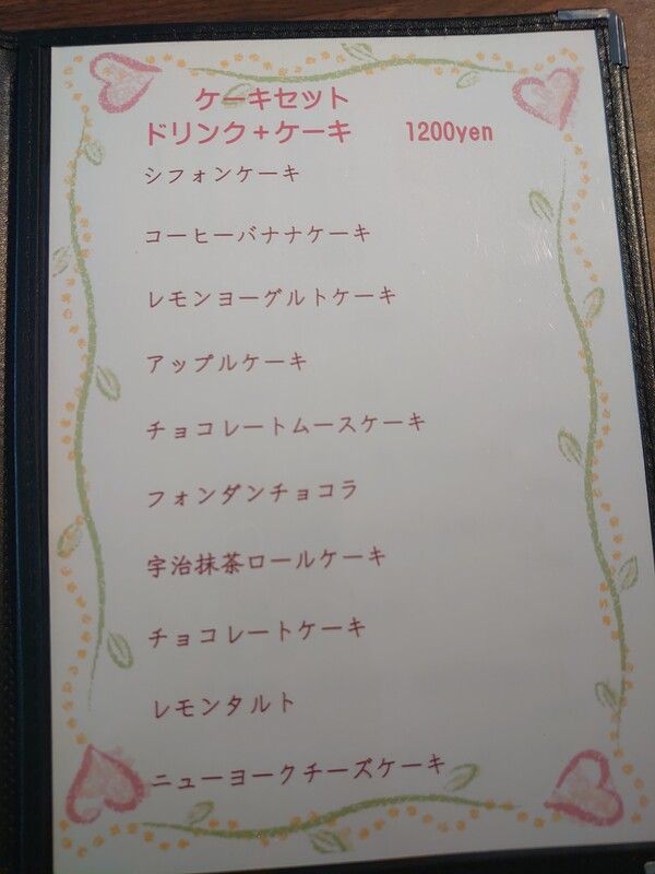 ケーキセットは1,200円です。10種類もあるので悩みますね。