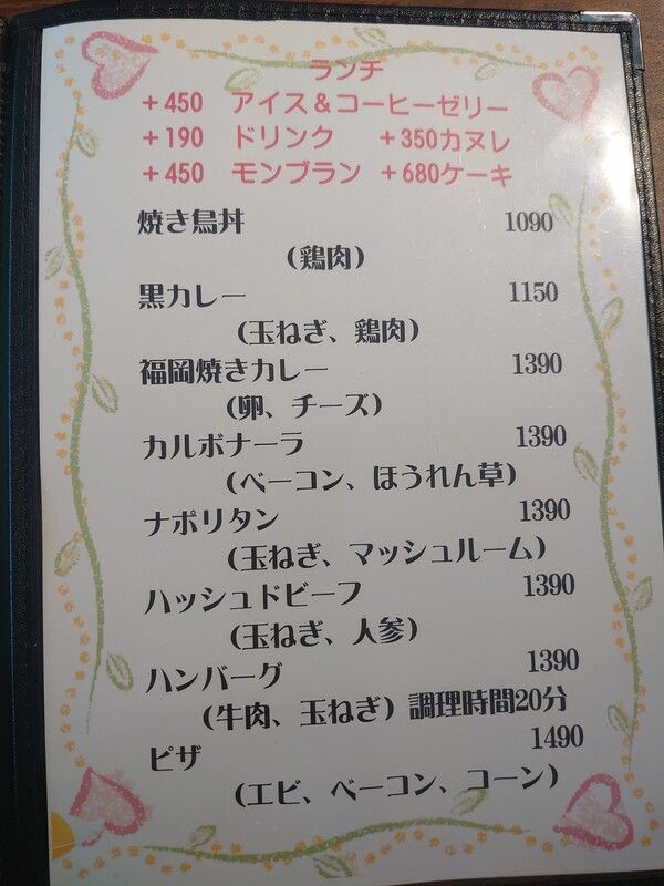 ランチメニューは、カレーやスパゲティなど洋食メインです。
