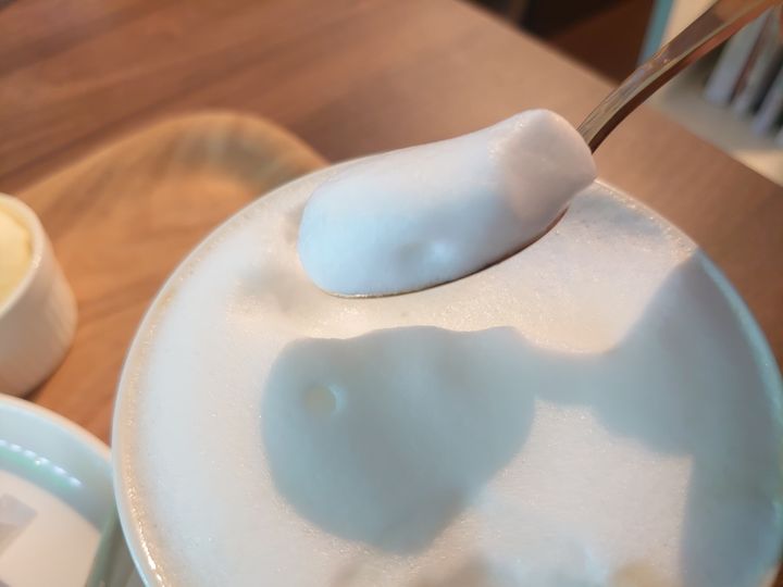 カフェラテの泡の決め細やかには、特にこだわっているようです。あまりに真っ白すぎて、一瞬フタかと思いました。唇が触れた瞬間、その分厚さにビックリ。スフレのようにふわふわで、スプーンですくって食べてもGOOD♪