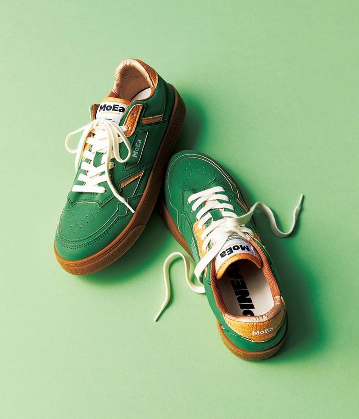 こっくりした配色。レザー見えしますが、見た目に比して軽くソフトな履き心地です。スニーカー〈ソール高2cm〉¥27,500(モエア/アマン)