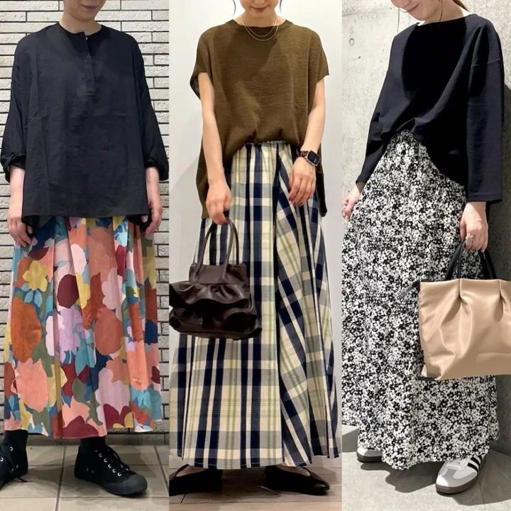 3. ダサ見えとおしゃれの違いは?「総柄ロングスカート」で大人の秋コーデ