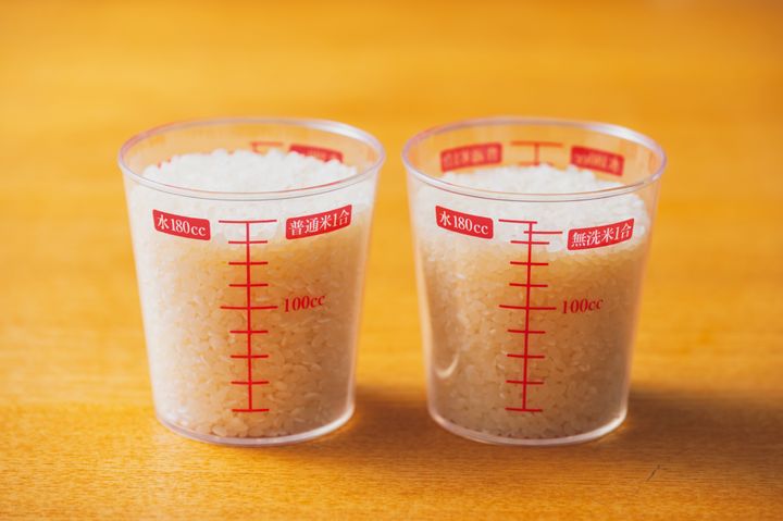 とがずに炊ける無洗米。表面のぬかがあらかじめきれいに取り除かれているお米なので、そのぶん体積が小さくなっています。炊飯時にベストなお米&水のバランスを保つためにも、正しい計量を行いましょう。