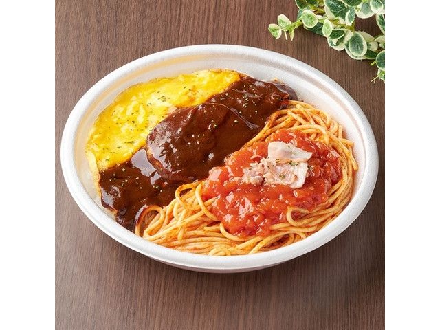 人気のオムライスとナポリタンを合い盛りにしたボリュームたっぷりのお弁当です。