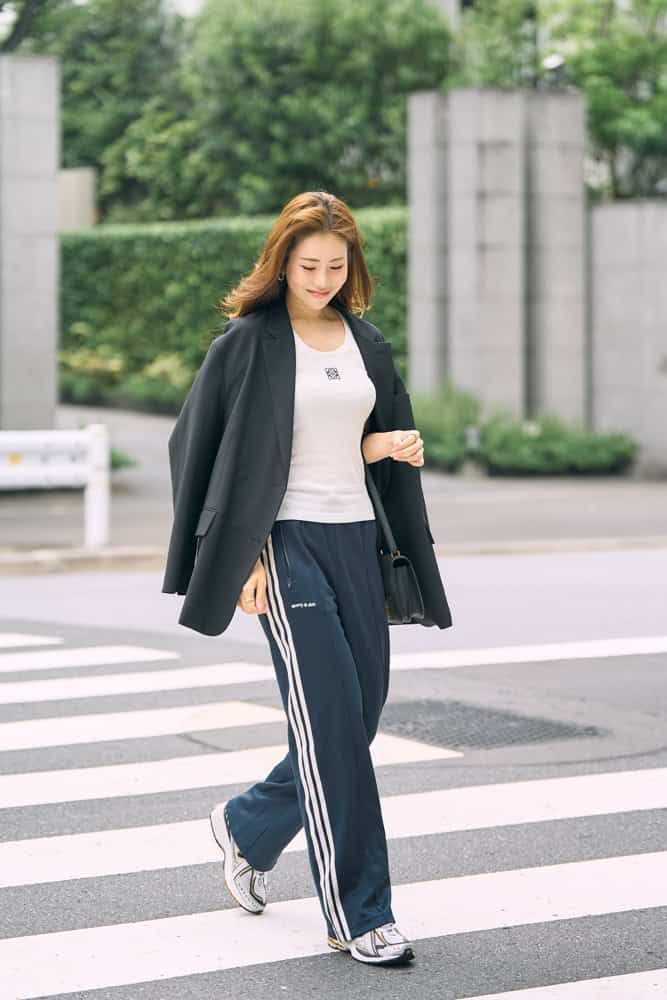 コーディネートを考える時は、主人公タイプらしい華やかさやトレンド感を楽しみつつ、「大人が無理なく着こなせること」を大切にしています。今回のテーマは「大人に似合うスポーティー」。お気に入りのスニーカーをきれいめジャケットに合わせ、全体の色味を絞ることで、スポーティーさの中に程よい落ち着きと上品さをプラスしました。