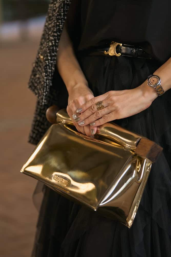 人との調和を大切にしたい…でも、華やかな雰囲気も楽しみたい!そんな思いを両立させる主人公タイプ。マニッシュなツイードジャケットと軽やかなチュールスカートを黒で統一し、「馴染む、でも華やか」を叶えた“甘ニッシュ”なほぼ黒コーデに。ボリュームのあるスカートに短丈ジャケットを合わせることで、バランスよくスッキリとしたシルエットに仕上げました。ゴールドのクラッチバッグを添えれば、リュクスな雰囲気が漂う一目置かれるスタイルに。