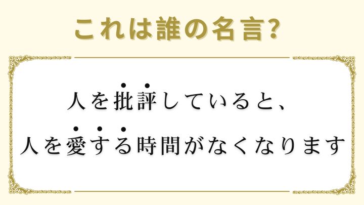 3. 「人を批評していると、人を愛する時間がなくなります」は誰の名言?どこかで聞いたことあるのに思い出せない...!