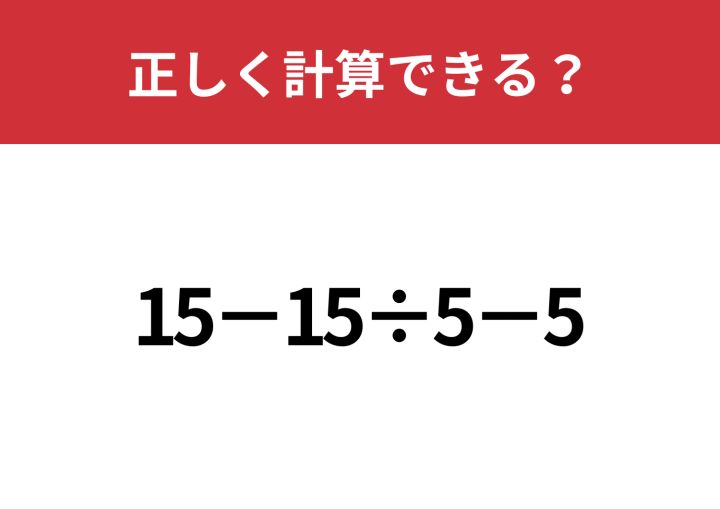 簡単そうに見えて正答率は低い!?「15−15÷5−5」正しく計算できる?