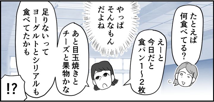 みんなが口ごもり、焦っている様子を見て、義母の言う通り私の考えが少数派なのだと理解しました。みんなの食べている量がすごすぎて……娘は朝も夜も、同級生ぐらいのごはんの量を望んでいたのでしょうか……? だとすれば厳しいです……。