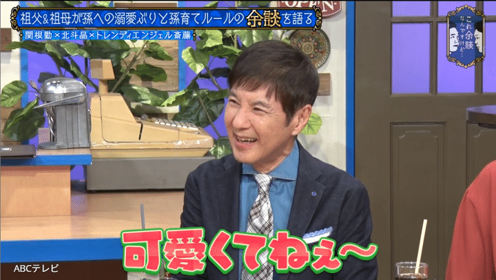 その意見に同意していた関根も娘の麻里に「甘すぎる!」と怒られているという。ある日お風呂の縁を歩きたがる孫の手を持って歩かせていたところ、麻里に「危険だから止めさせて」と怒られたため「だから今麻里が見ていないところでやっている」と答え、山内たちに「やってますよー!」と突っ込まれていた。