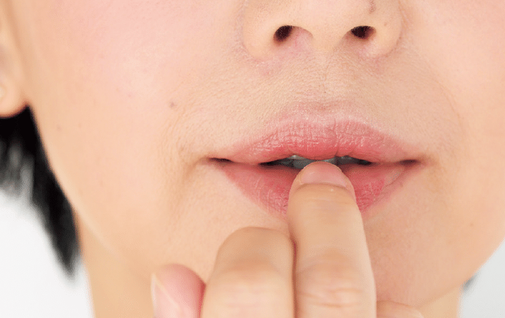 上唇の 山谷をくっきりさせて人中を短く見せる