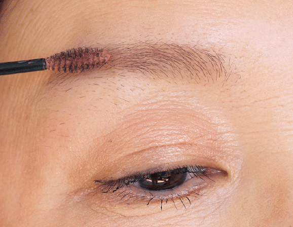 「眉っぽくない色ですが、このニュアンスがイマドキ。足りないところは濃いブラウンで埋めて」