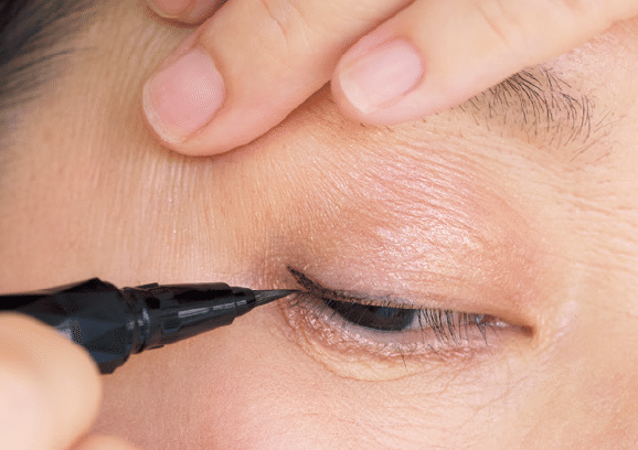 「乾くと肌に定着して消えにくくなるので、引いた直後になぞるのがコツ。自然なラインになります」