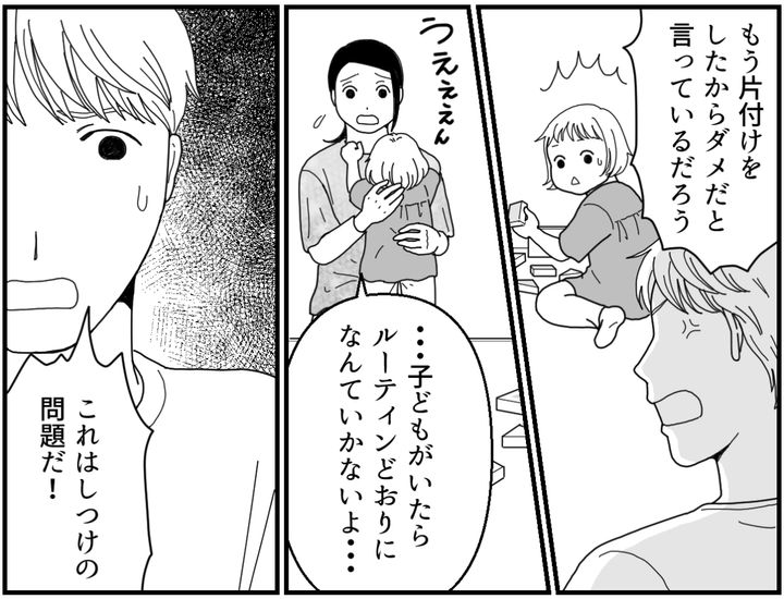 日常のルーティンを重要視する夫は、私やユリが自分に迷惑をかけていると言わんばかりです。生活リズムをパターン化できない私に対し、「ズボラ」とか「なにもできない」とかいう扱いをするようになりました。
